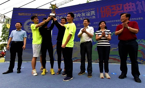 最终,公司龙舟队以3:0的成绩战胜了武汉大学龙舟队。丁烈云向辛勤付出、收获佳绩的队员们颁发了总冠军奖杯。