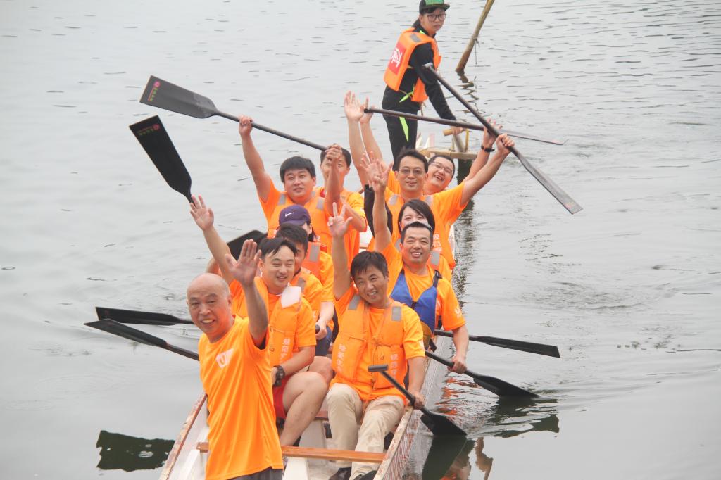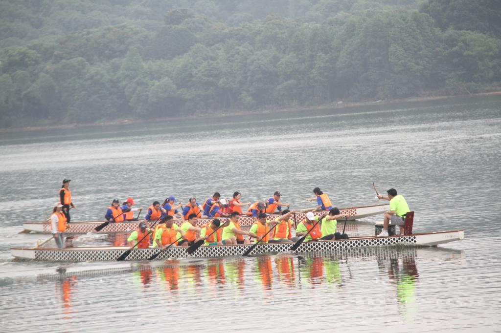 比赛开始,微风拂面、小雨绵绵,但丝毫未影响每只队伍的激情。随着裁判员一声令下,桨动舟行,湖水打在身上,汗水溶于湖水,整装待发的龙舟如离弦之箭随着鼓点急速前进。经过激烈的比拼,最终四教研、一教研、办公室和场馆管理中心分获友谊赛前三名。