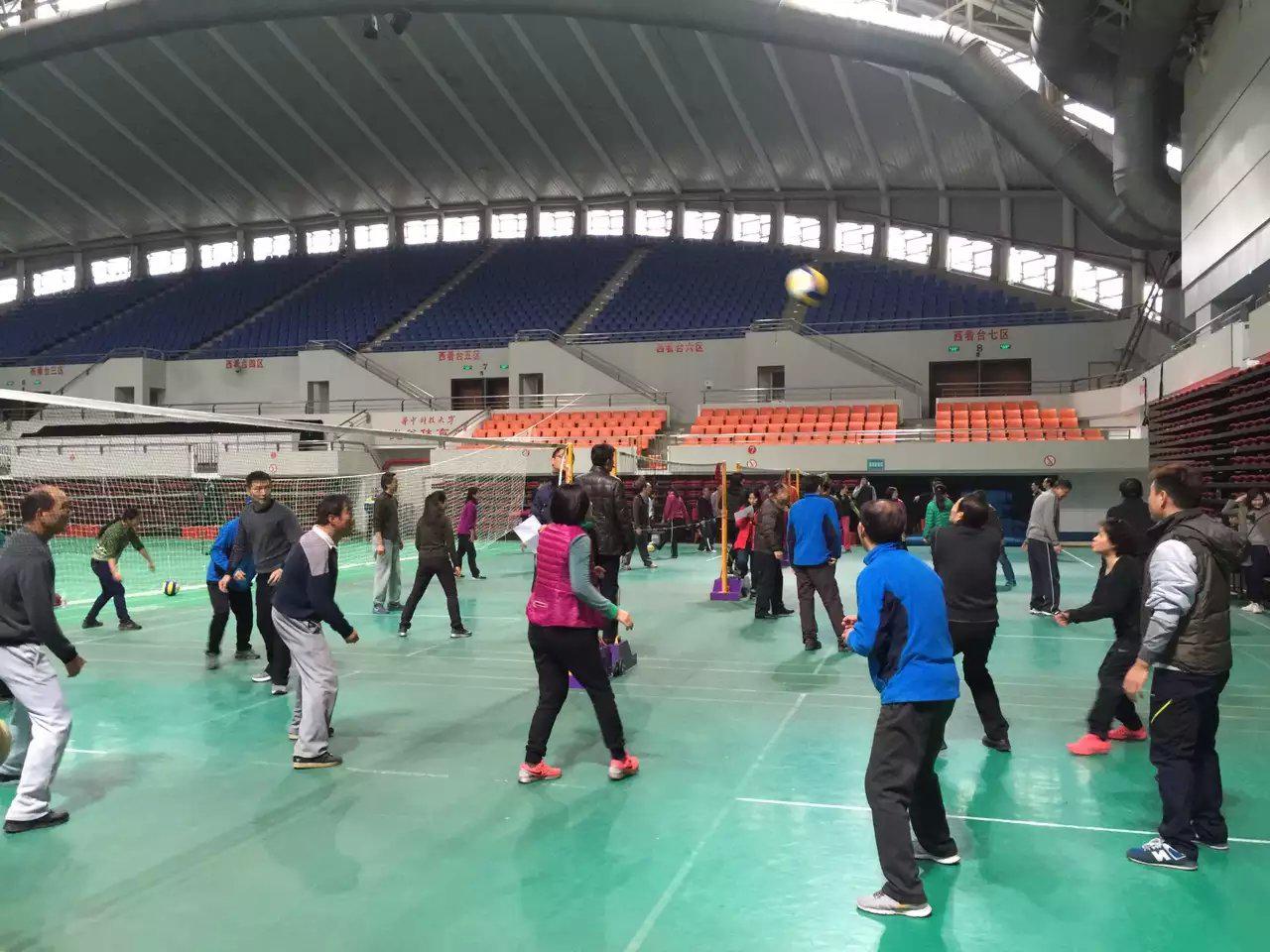 2016年1月12日下午,寒风凛冽,天寒地冻,光谷体育馆内却是气氛热烈,热火朝天。为了丰富体育部教职工的文化生活,推广气排球运动,增进各科室的友谊和团结,促进教职工形成健康地生活方式,由体育部工会主办,第三教研室承办的首届教职工气排球比赛如火如荼地进行。