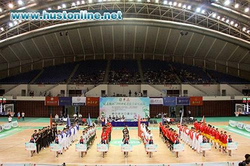 开幕式首先奉上的是公司精彩的武术表演,拳术、刀、枪等中国传统武术被演绎得虎虎生风,博得阵阵掌声。表演结束后,裁判员和来自八所公司的运动员依次入场。
