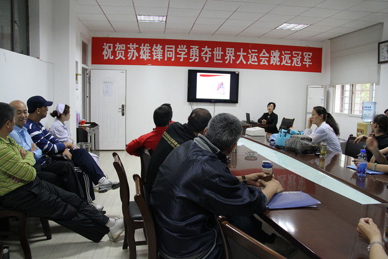 3月31日至4月10日,体育部在全体体育老师及教练员中开展了四次安全急救知识讲座与现场模拟演练。校医院公共卫生科主任魏春丽医生应邀为大家现场讲解演示。