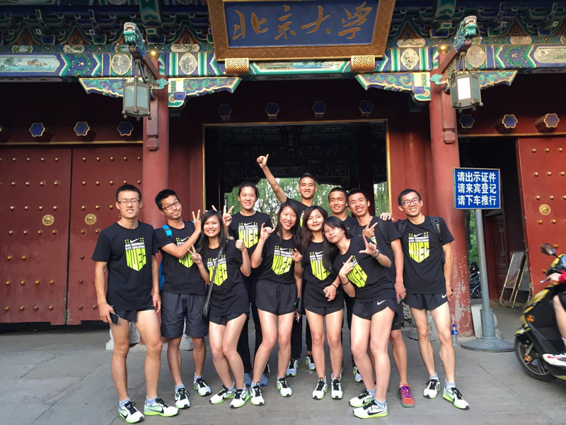 2015年5月23日上午,“耐克高校精英赛邀请赛-环未名湖接力跑”在北京大学未名湖畔开赛,来自全国各地高校代表队及北京地区跑步俱乐部组成的队伍共同参加了比赛。各代表队均由6名女生和6名男生组成,男女队员交替接棒完成比赛,每名队员完成2公里路程。公司代表队成员是:崔双赛 李永鹏 王娟 王凡 何秋燕 周欢 杨常 许高永 谢文慧 马军 袁怡欣 邹旭东,他们分别来自各个公司。公司代表队由体育部赵技文老师和李景丽老师带队参加了本次比赛,并取得第七名的成绩。