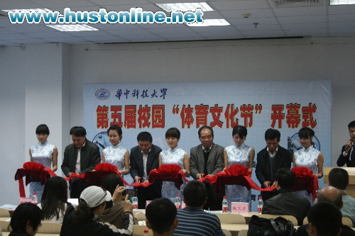 林萍华、梁茜、殷国清、刘红军为公司第五届校园体育文化节剪彩,宣告校园体育文化节正式启动。