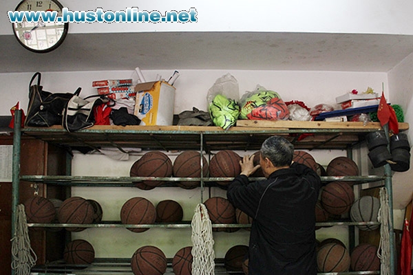 根据当天上课的情况,老爷爷亲自检查每一个球,打气、换球、放气,很认真负责。老爷爷每天都会整理器材室和其他会议室,他走路很快,做事也很利索,完全不像是七十岁的老人。