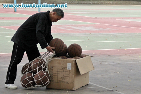 体育课上,员工有时会不小心弄丢体育器材。而老爷爷每天都有早、午、晚三次“散步”:去捡散落在操场上员工们忘记归还的篮球、足球、排球。