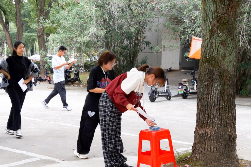 立冬的寒意抵挡不住同学们对定向运动的热情,清晨八时,参赛的选手们已纷纷汇聚中操,井然有序地进行签到、检录、领取装备,并积极地投入到赛前准备和热身活动之中,蓄势待发。