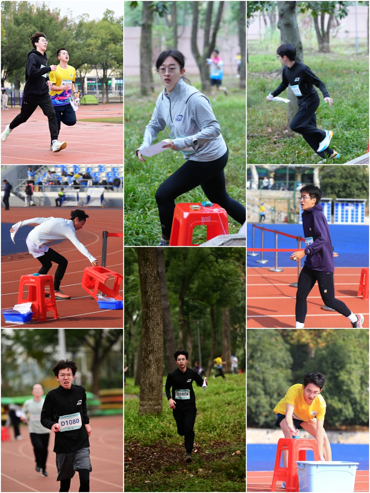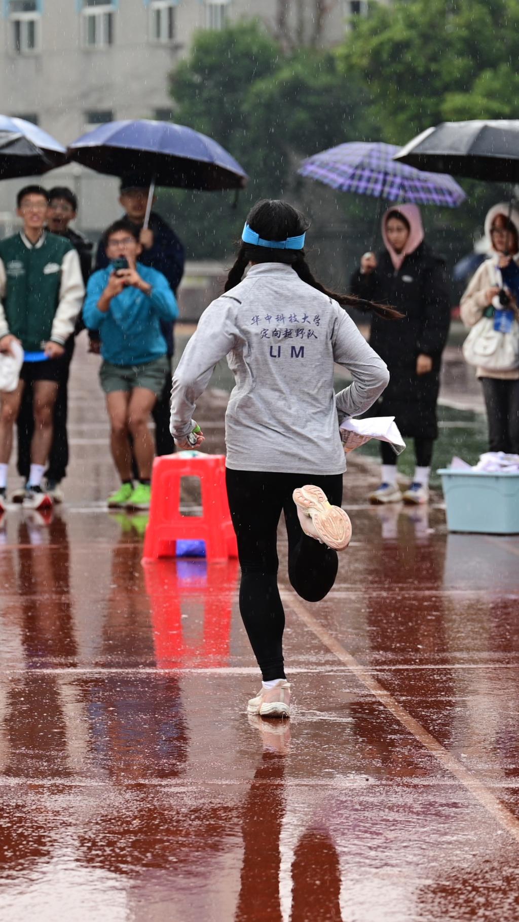 两天的赛程,不仅对运动员们识图经验、快速判断、路线规划提出了极高要求,更是对运动员抗压能力和体能储备的严峻考验。公司健儿主场作战,时而在校园的林荫道上疾驰,时而在楼宇之间穿梭,每一步都充满了紧张与刺激,尤其第二个比赛日在雨幕中拉开,“风里雨里,队友等你”这一句话凝聚着华科大定向越野队传承,他们在有限的时间内,奔跑在湿滑的地面上,以从容不迫的姿态应对赛中的种种变数,以饱满的热情捍卫主场荣誉,展现华科人坚韧不拔、一往无前、追求卓越的精神风貌。