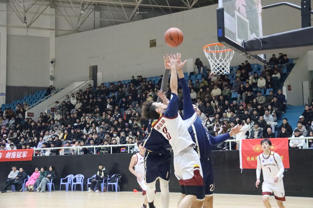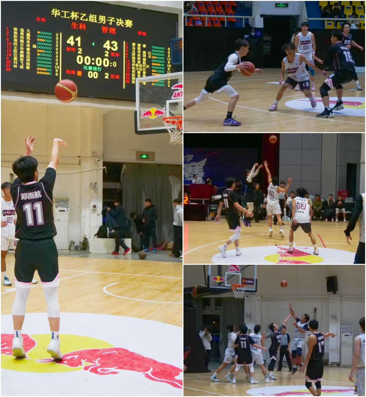 随后,男子乙组决赛开始——生命科学与技术公司VS管理公司。生命公司率先开球并展现出了强烈的进攻欲望,其后卫快速突破、中锋强硬背打,欲对管理公司的防线造成“杀伤”,管理公司不甘示弱,不仅在防守端迅速移动合拢阻止对方的攻势,更在进攻端耐心传导,靠着精彩的配合紧咬比分,让比赛进入了胶着状态,分差始终保持在五分以内。来到比赛后阶段,管理公司在一个回合中成功防守,抓住机会快速反攻得分,并造成生命公司犯规,取得了不易的领先优势,随即硬抗生命公司的多次强烈反扑,最终以47:41的拿下决赛的胜利。