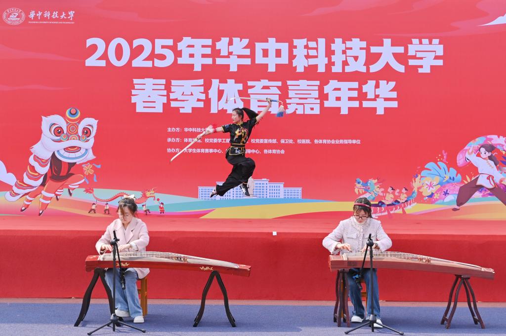 下午14:00,同学们汇聚中心操场,舞台之上,FM锋芒街舞社踩着炫动的节拍,踏出了青春的朝气与活力。武术与古筝的结合,筝弦悠扬、剑舞翩跹,辗转腾挪之间将“点燃”全场。