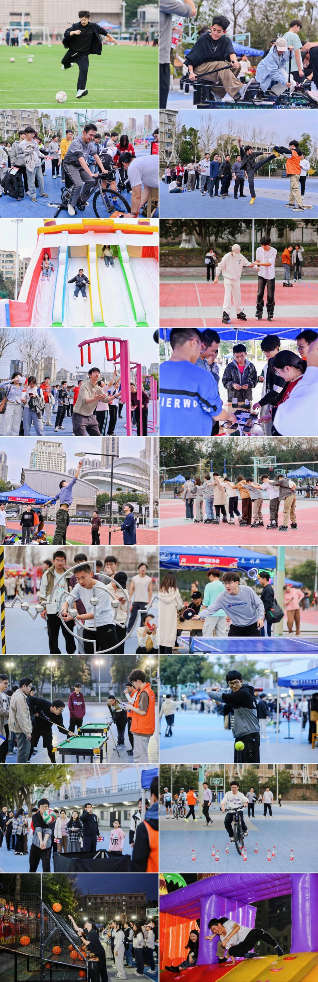 “投壶”“扎七星”“金鸡独立”“穿越火线”“轮滑绕桩”“兔子舞”“飞盘九宫格”“骑行台竞速”“奋勇冲关”......同学们或一人独行或三五成群于各个游戏点间穿梭,在奔跑间尽显活力,在跳跃中挥洒汗水,在挑战中增进友谊,享受着校园生活的美好与纯粹。