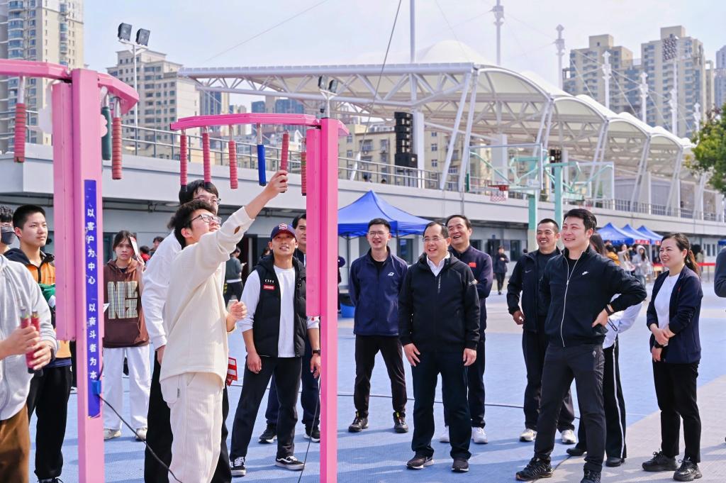 热身结束,挑战开启。张耀一行深入活动现场,与同学们共同参与趣味游戏,进行互动交流。他们详细了解社团协会的发展现状,关切询问员工的学习生活情况,认真听取大家对校园体育活动的意见和建议,并对本次体育嘉年华的成功举办给予了充分肯定。