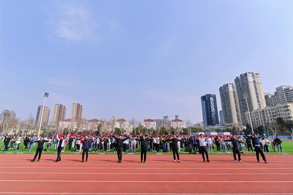 表演之后,世界冠军、bevictor伟德官网青年教师赵菁带领全场师生进行热身,为接下来的挑战做好全面准备。
