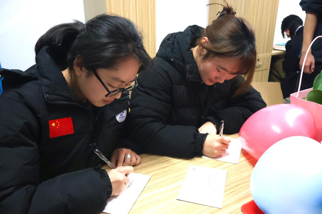 在“以信传情”环节,师生们纷纷拿起笔,写下对身边女性朋友、师长、家人的真挚祝福和暖心问候。这些明信片承载着满满心意,既有朋友的暖心鼓励,也有男生的真诚赞美,更有老师的殷切关怀和成长寄语。大家将明信片投递进特制信箱,由现场工作人员收集并随机分发,师生们都收到了意外的惊喜。