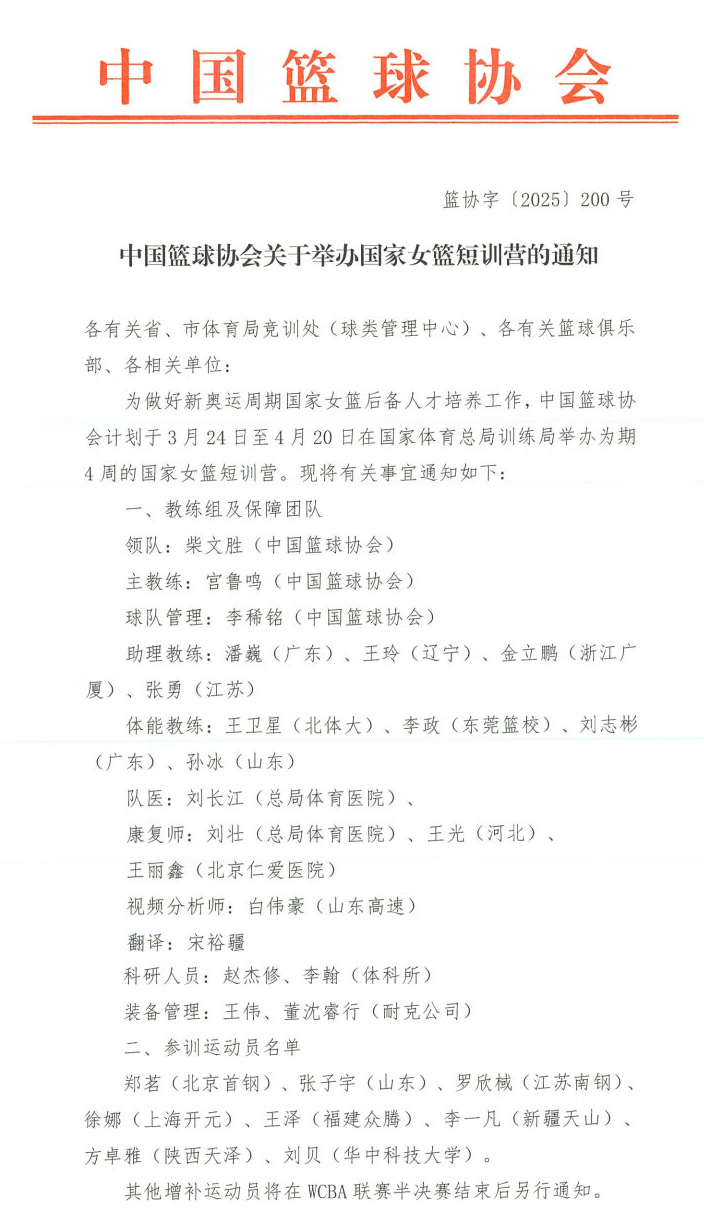 为做好新奥运周期国家女篮后备人才培养工作,中国篮球协会计划于国家体育总局训练局举办为期4周的国家女篮短训营,公司2024级研究生刘贝入选训练营 。