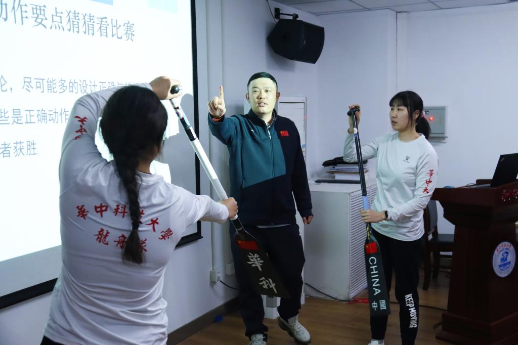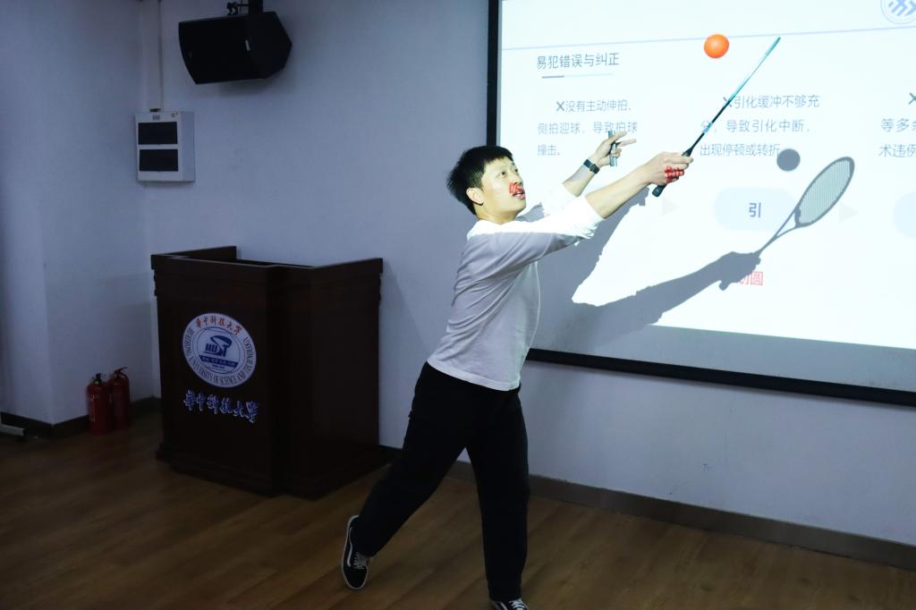 童胜玢老师则以柔力球“刚柔并济”的特点为切入点,通过“迎、引、抛”慢动作拆解对弧形引化技术的演示,展现传统运动的现代教学魅力。