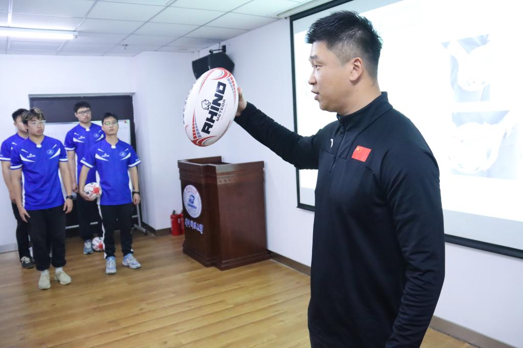 橄榄球张琳老师聚焦专项战术,通过AI技术采集数据与搭建传球游戏比赛场景,引导员工思考技术动作特点,探究传接旋转球的动作要领与应用。
