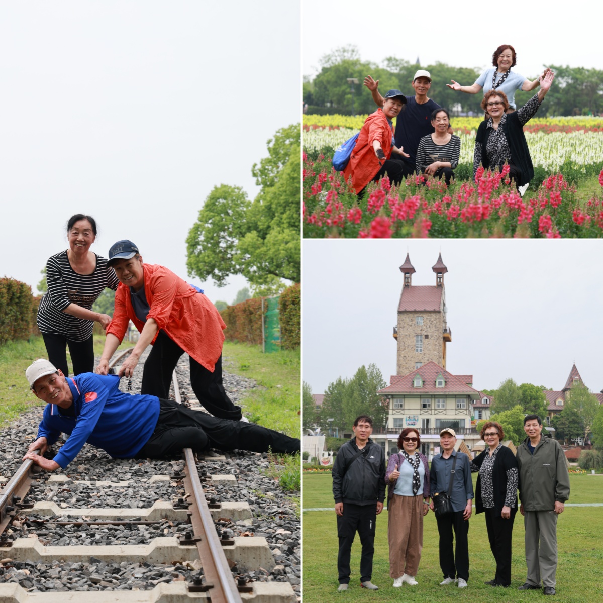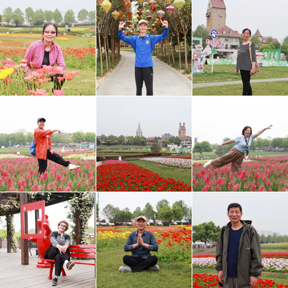 抵达花博汇。花团锦簇的花坛、错落有致的欧式建筑与波光粼粼的湖泊相互映衬,老同志们漫步在园区小径,享受着春日阳光与清新空气,时而惊叹于花卉的娇艳多姿,时而感慨大自然的温柔馈赠,或驻足欣赏娇艳欲滴的花朵,或三两成群拍照留念,轻松愉悦的氛围中仿佛时光也变得缓慢而悠然。