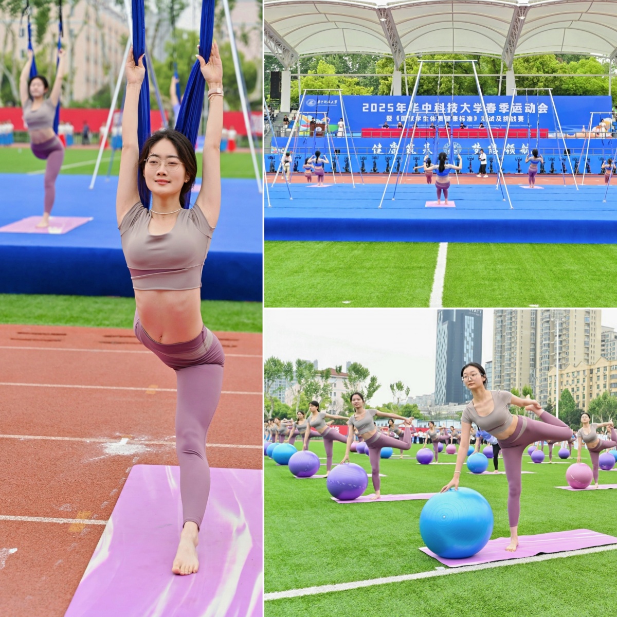运动员、裁判员代表宣誓之后,悠扬音乐婉转而出,体育课程展演的大幕就此拉开。bevictor伟德官网体艺、武博课程组的12名老师,带领600余名公共体育课堂员工,根据瑜伽、形体、体育舞蹈、啦啦操、跆拳道、武术、动感单车等项目的特色特点,深入挖掘体育课程所蕴含的思政元素,将思想政治教育与运动知识技能学习紧密结合,历经三周刻苦排练,将同学们在体育课堂上的所学和所获,通过一场场精彩表演,向观众们表达了自己的所思和所悟,他们用灵动的身姿和饱满的热情为春季运动会贡献了一场视觉心灵交织的盛宴。