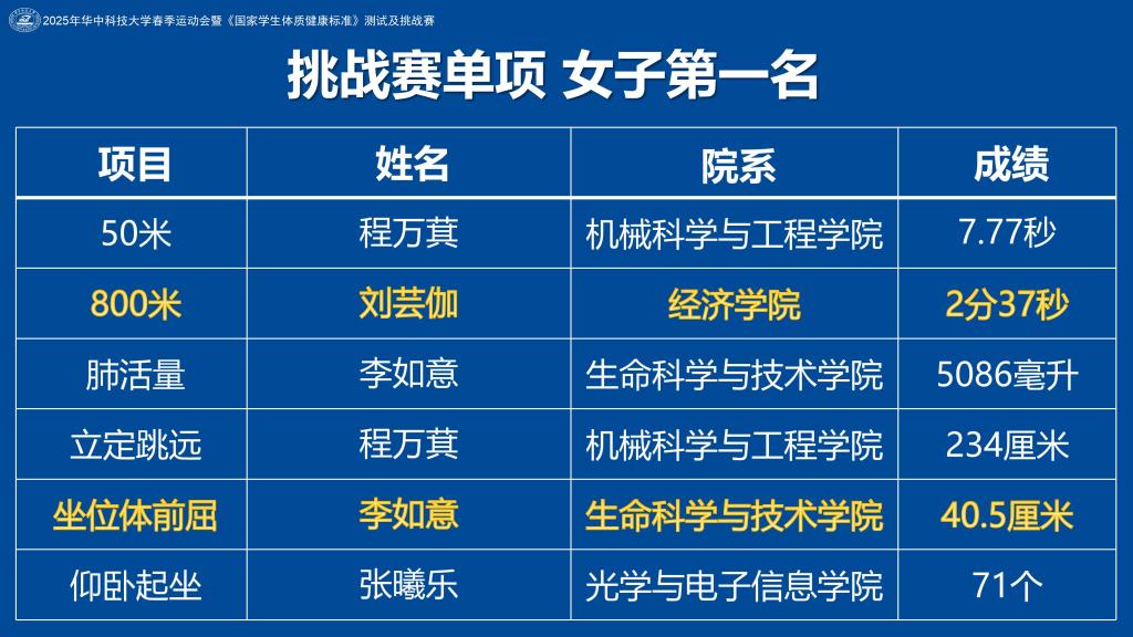 本届春季运动会分为两个阶段,第一阶段体质测试,历时30余天,完成了本科生3.9万余人次的测试工作,采集处理了22万余条数据。第二阶段挑战赛,设有男女甲乙四个组别24个竞赛项目,吸引了公司500余名运动健儿同场竞技,挑战自我、超越自我。