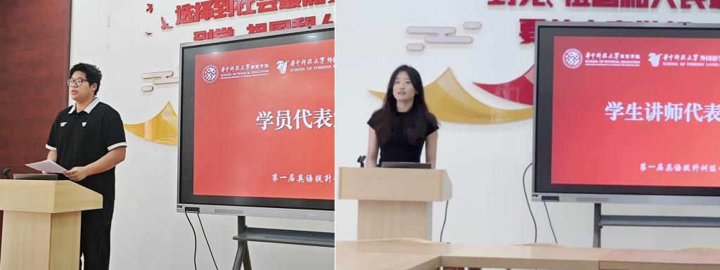 外国语公司研究生刘晓萌代表员工讲师发言。她说道,会将每周的线下课堂打造成拆解真题、打磨技巧的训练场,把线上互动变成随时响应疑问的充电站,期待与同学们共同营造积极的学习氛围,陪伴大家在未来9周的学习中突破自我。同时,她呼吁讲师们把本次训练营作为一场英语教学的生动实践,在教学相长的过程中淬炼自己。
