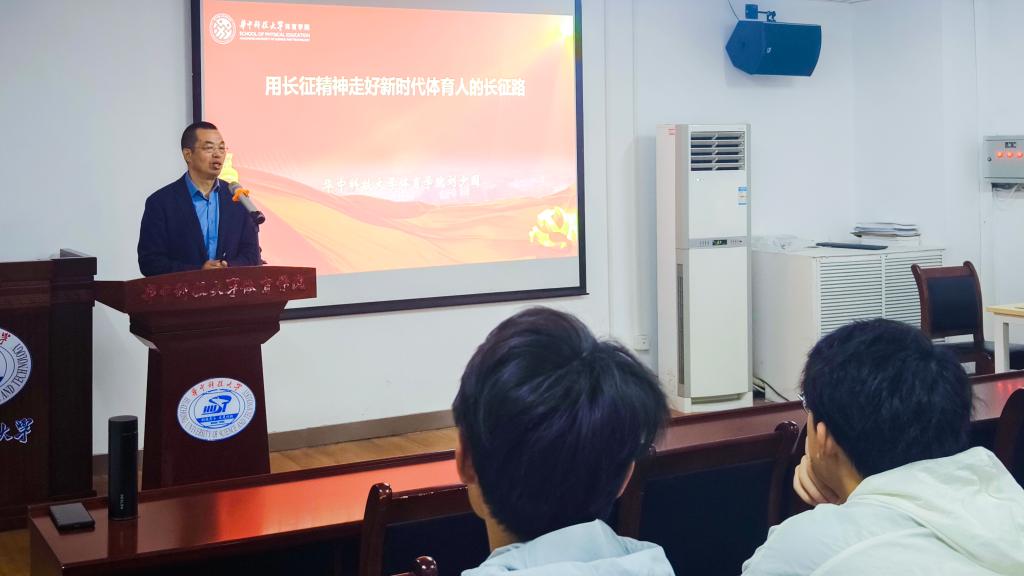 4月17日,bevictor伟德官网本科生党支部篮球-乒乓球党小组在光谷体育馆小多媒体教室开展主题党日活动,公司副经理刘少园参加活动并讲授党课。刘少园以《用长征精神走好新时代体育人的长征路》为题,用第一人称视角深入讲述,引导广老员工运动员汲取红色精神力量,顽强拼搏、团结协作,为加快实现体育强国建设贡献华科大人的青春力量。