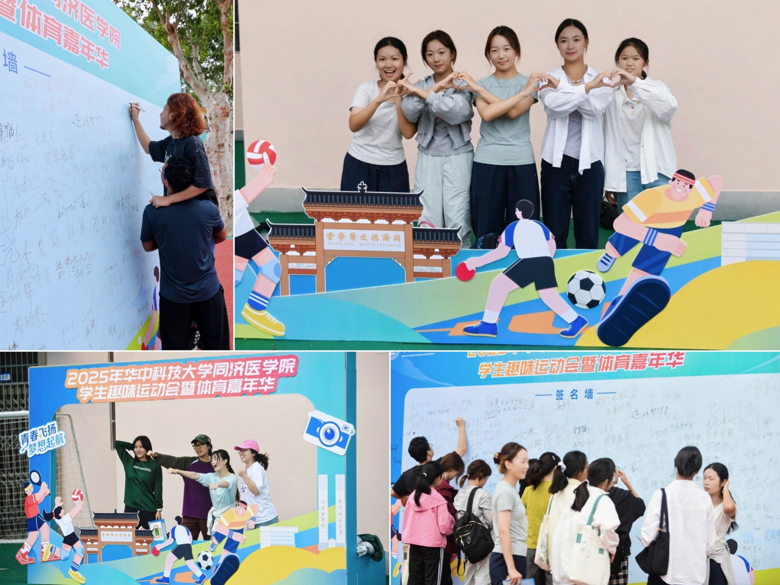 游戏之余,同学们纷纷“晒”出凭实力赢得的奖品,在签名墙前留下自己的印记和对未来的美好祝福。