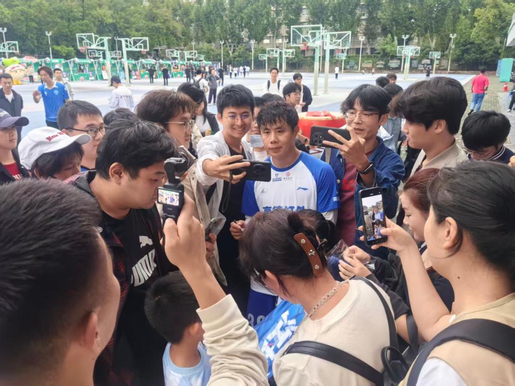 作为球队中场的中流砥柱,公司2024级研究生、前国足队长蒿俊闵在赛后更是成为同学们眼中的“香饽饽”,他被大家围得“密不透风”,纷纷争相与他合影留念、索要签名。