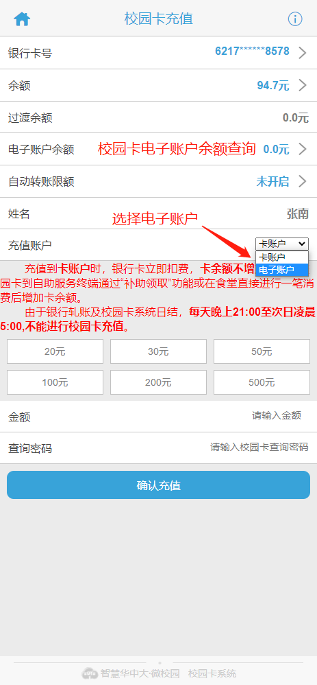 电子账户充值和余额查阅流程如下: