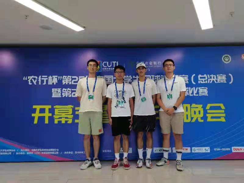 公司男子网球代表队由生命科学与技术公司杨淳茗,第二临床公司赵昱充,能源公司龚骋原,光电公司杨霁组成。比赛开始,公司男团先后战胜五邑大学、北京师范大学、西安电子科技大学,以三连胜小组第一的成绩出线。在淘汰赛中,公司男团又先后战胜了中国地质大学和重庆师范大学,其中杨淳茗和龚骋原以娴熟的技术和完美的配合赢得观众阵阵掌声。半决赛中,公司男团惜败大连理工大学,取得男子团体季军。经此一役,公司男团更加清楚的认识到了自己在技战术和心态调整方面的不足,虽已无憾拼尽全力,但相信他们绝不会止步于此。