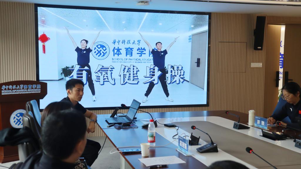项目组成员根据戒毒人员的年龄、性别和运动强度,依次展示了三套有氧健身操和一套间歇性有氧训练方案,并详细介绍了其创编理念、特点功效、运动负荷、干预机制,以及现阶段健康体适能数据统计的进展情况。