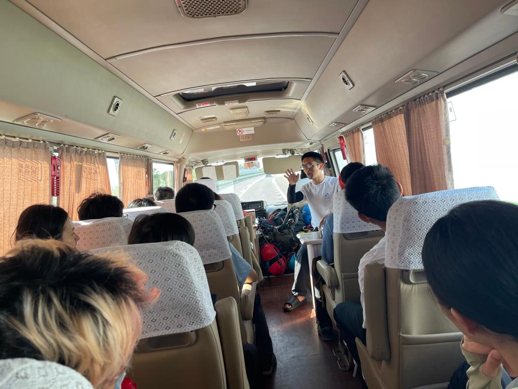 经过充分前期筹备工作,同学们信心满满地踏上了这场充满挑战与欢乐的旅程。在前往毛铺的大巴上,领队郑子未再次向大家强调活动中的安全注意事项,同时通过趣味介绍环节帮助同学彼此进一步“破冰”,为即将到来的“挑战”打下基础。