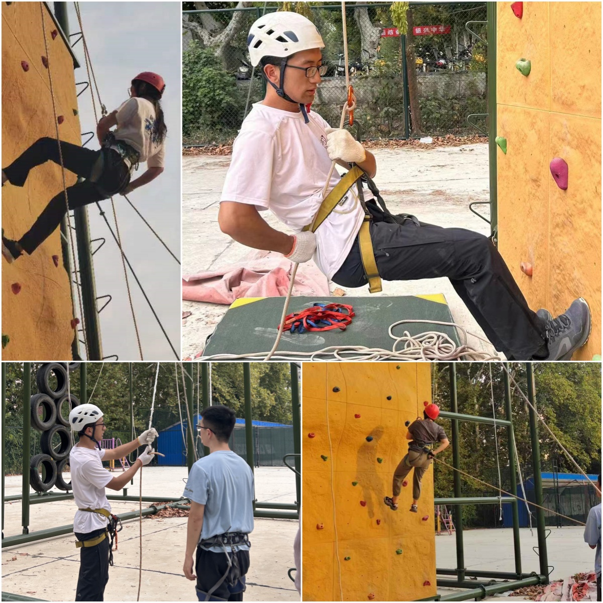 活动开始前,协会骨干成员为参与活动的同学逐一进行了系统的岩降培训,内容涵盖了岩降的基本技能、安全注意事项及应急处理方式,确保每位同学在活动中都能从容应对挑战。