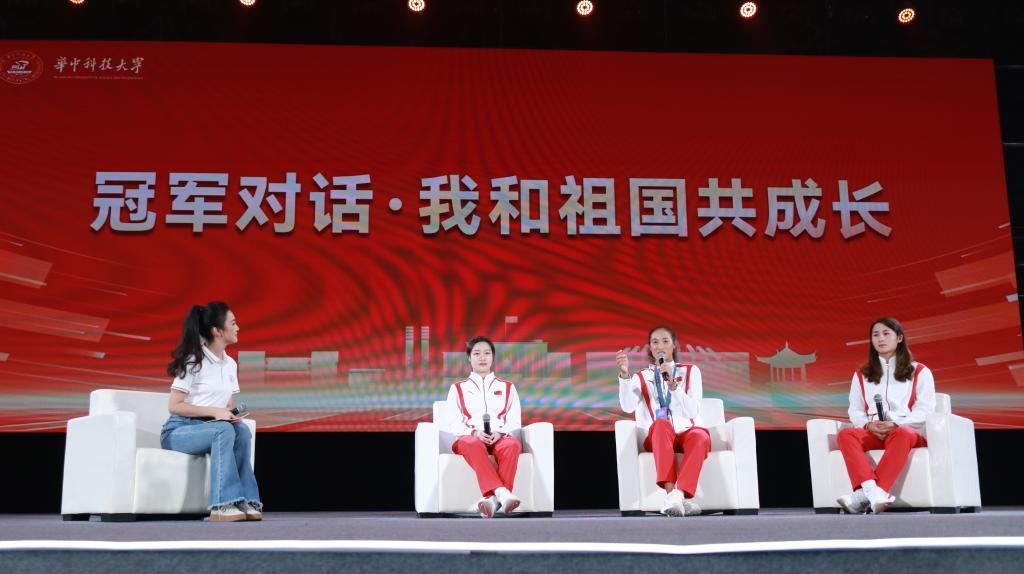 冠军的成就之路上有哪些鲜为人知的经历?“超越自我、永不言弃”的奥运精神如何传递?在“冠军对话”环节,主持人与昌雅妮、郑钦文和孙梦雅进行了访谈对话。三位冠军学子回顾了在奥运赛场上奋力拼搏、为国争光的难忘时刻,分享了自己面对挑战不断超越和突破的成长故事。