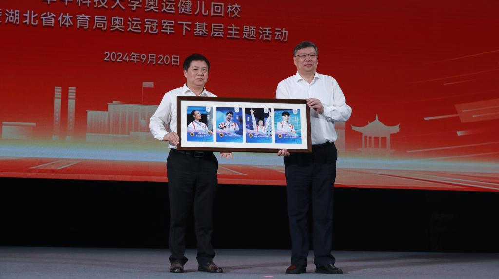 校地携手共铸荣光,湖北省体育局为公司送上定制牌匾作为礼物,定格华科大冠军学子最精彩的巴黎奥运瞬间。