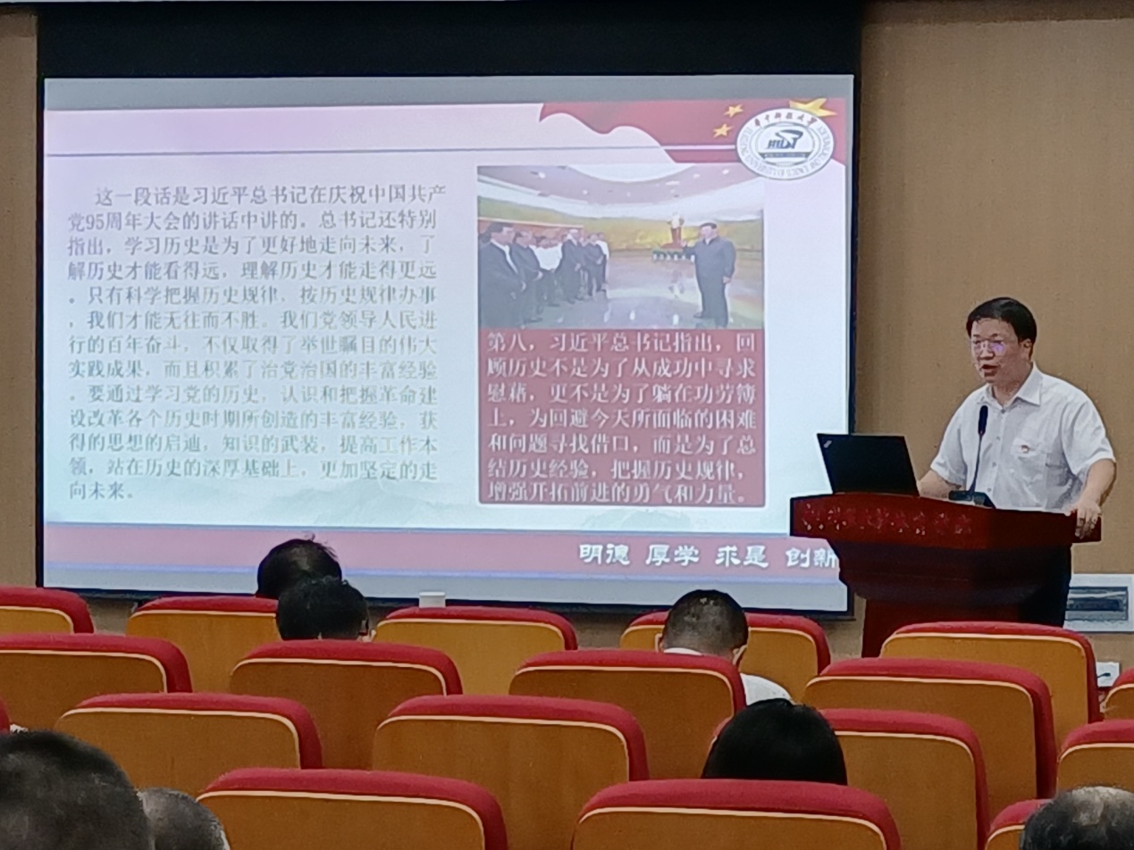 他谈到,学史明理、学史增信、学史崇德、学史力行,最终要落实到“干”上,党员要发挥模范带头作用,要敢于担当,珍惜党给的机会,以一流的理念、一流的管理、一流的服务培养一流的人才。