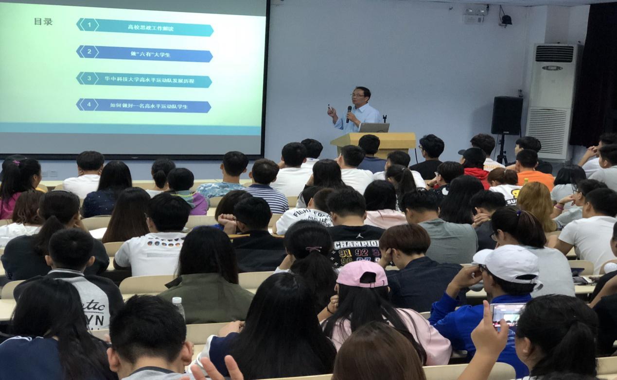 首先,体育部辅导员李晨老师对思政课的重要性做了介绍,并希望大家能学有所思、学有所感、学有所得。同学们报以热烈的掌声表示欢迎。后作为主讲人的孙竞波主任,从高校思政工作解读、做“六有”老员工、伟德国际唯一官网入口高水平运动队发展历程、如何做好一名高水平运动队员工四个方面展开了演讲。