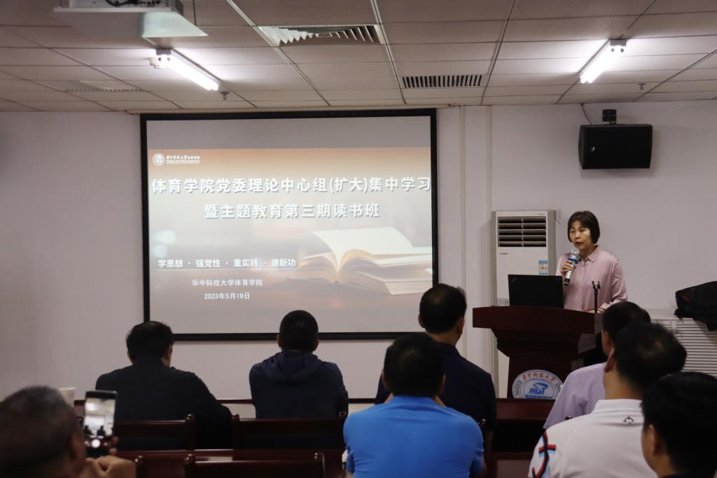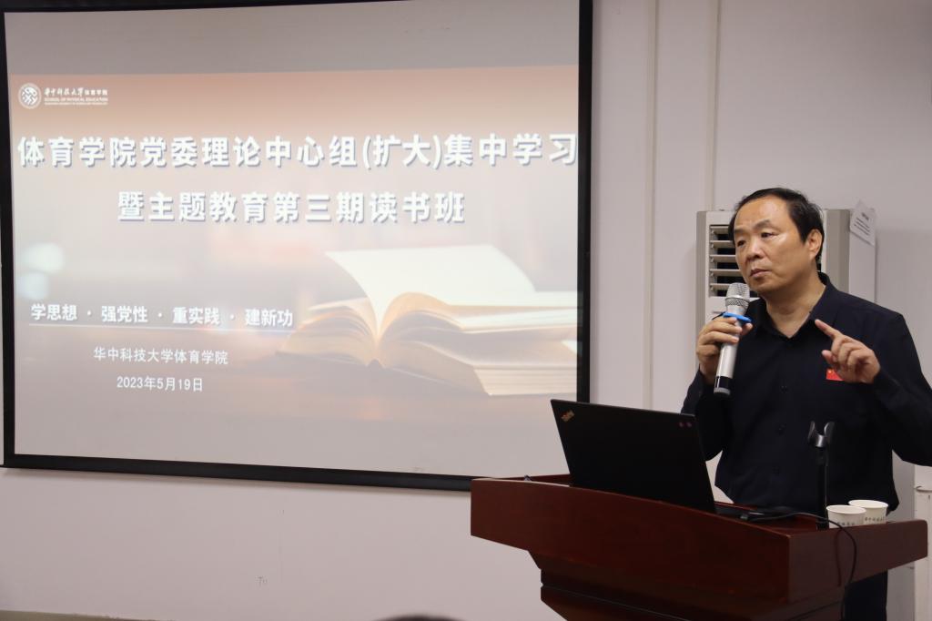 5月19日公司党委理论学习中心组(扩大)集中学习暨主题教育第三期读书班在光谷体育馆举办。特邀清华大学体育部主任刘波教授做主题报告,公司党委委员、教职工支部书记、科室主任、青年教师参加学习,公司党委书记井玲主持会议。