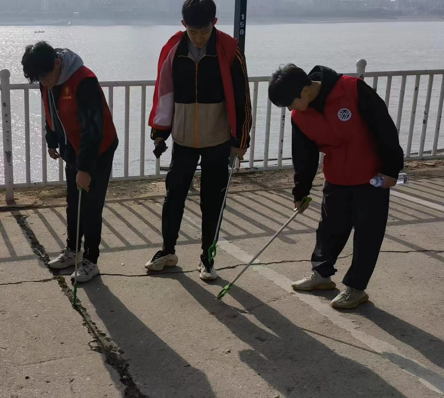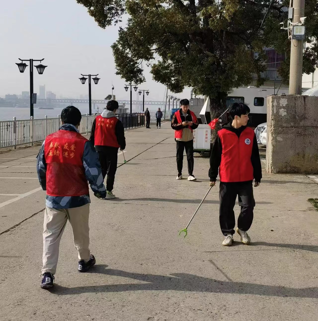 江汉关社区毗邻长江,巡江护堤是社区重要的工作板块之一。在工作人员的带领下,队员们身着红马甲,走上长江堤岸,沿途观察江边情况,重点巡查非法捕捞等不法活动,同时清理江边垃圾,共同守卫长江生态文明建设的宝贵成果。