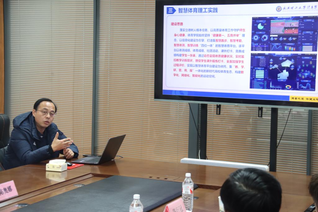武汉理工大学公司党委书记聂微菁、经理阳艺武、副经理方维对公司调研团的来访表示热烈欢迎。在座谈交流中,阳艺武详细介绍了武汉理工大学的“智慧体育”和“经理驾驶舱”等数字化平台的构建背景、设计理念及应用成效。智慧体育平台集智慧跑步、智慧考勤、智慧体测、智慧训练“四位一体”,构建了“教、学、研、管、用、服”一体化的新时代高校体育生态。经理驾驶舱采用系统展示、数据说话的形式,全面展示了人事、教学、科研、竞训、学工等板块的工作成果,是促进公司高质量发展的有效帮手。