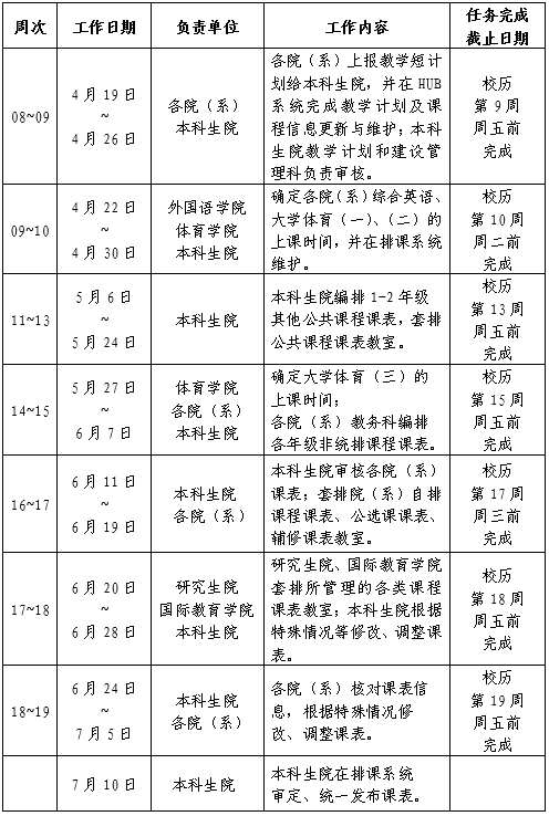 5.课程表是公司教学活动和员工选课的基本依据,各院(系)课表一经确定,由本科生院审核、统一发布后,原则上不再更改,如有特殊情况需要修改,请严格履行本科调课手续。